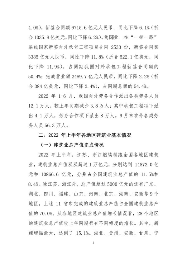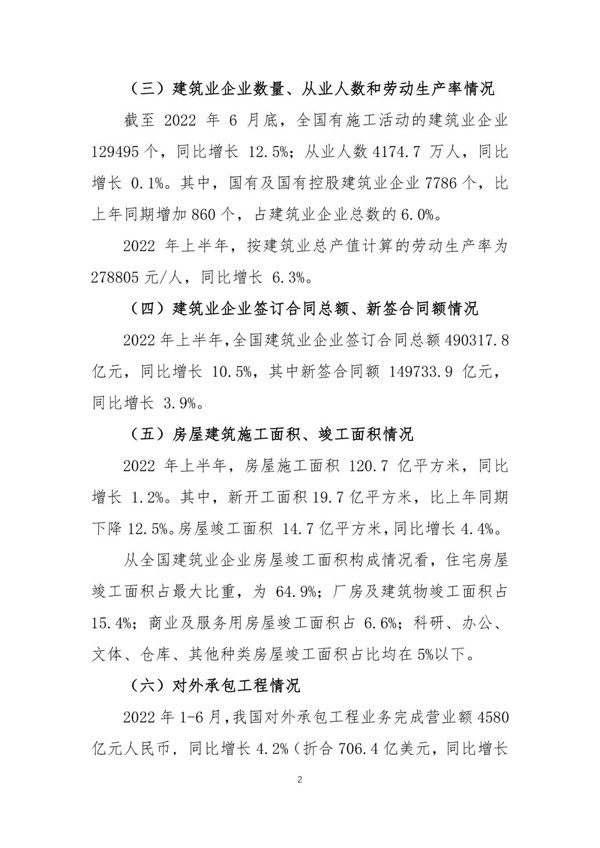 2022年上半年建筑业发展统计分析
